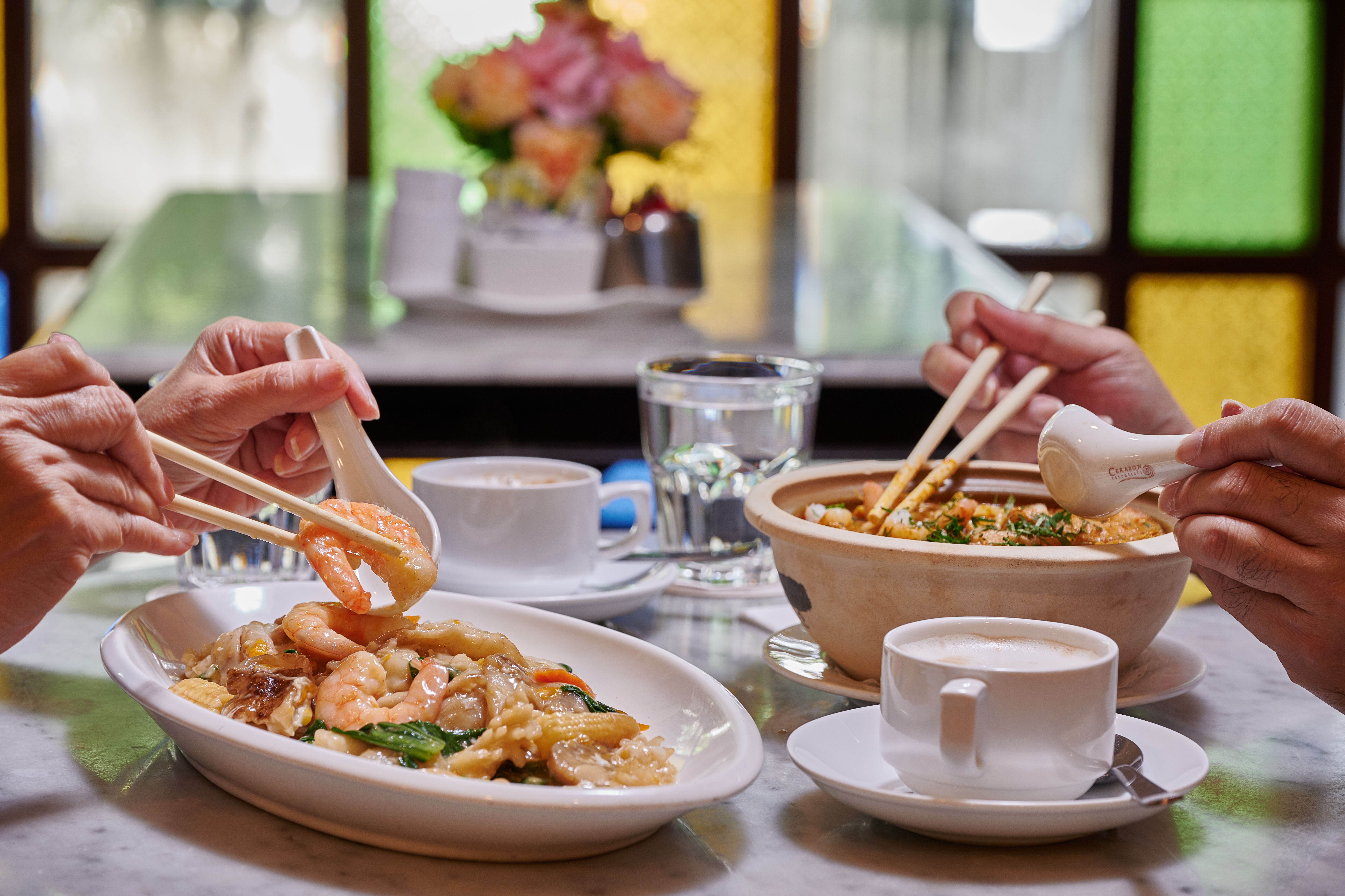 The trishaw, the primary mode of transportation in Singapore’s post-war era, is the theme of Hotel Royal’s all-day dining restaurant located at its lobby level.