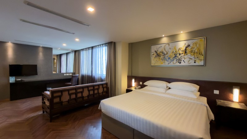 Its well-appointed 362 deluxe rooms and suites, adorned with the comforts of home, are among the most spacious in Singapore at 30sqm. Other amenities include wireless broadband, satellite/cable TV channels and in-house movie channels. There is also an in-house gym for the fitness-conscious and a self-service launderette room for guests who prefer to do their own laundry.